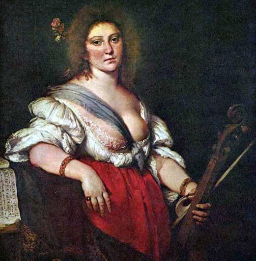 Бернардо Строцци. Музыкантша с виолой-да-гамба. 1630-1640 годы. Холст. Дрезденская галерея.