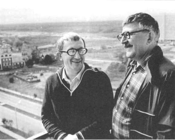 Борис и Аркадий Стругацкие дома у Аркадия. 24 сентября 1983 г., Москва. Фото И. Г. Кочнева, которое было использовано в книге Г. Прашкевича и Д. Володихина «Братья Стругацкие».