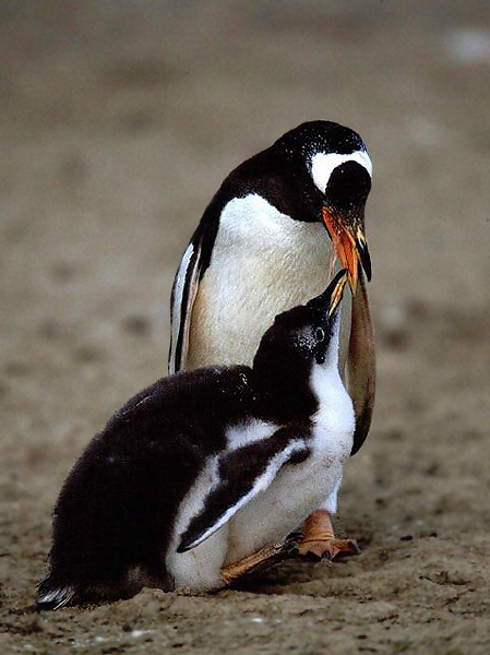 Субантарктические пингвины выкармливают своих птенцов, отрыгивая пищу им в клювы.