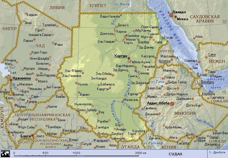 Судан (географическая карта).