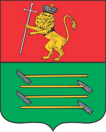 Герб Судогды был утвержден 19 августа 1781 года. На зеленом поле четверо положенные параллельно грабли, в знак изобилия сенокосом.