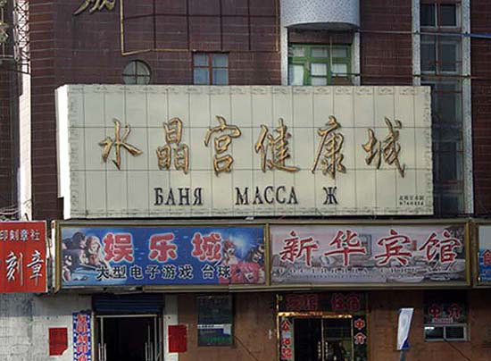 Суйфэньхэ. Баня. В пограничном городе вывески часто дублируются на русском языке.