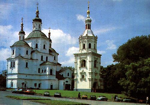 Сумы. Воскресенская церковь.1702. Относится к памятникам слобожанской школы строительства, образец архитектуры украинского барокко. После реставрации в 1970-е гг. церковь выглядит так, как она запечатлена на картинах украинского художника К. Трутовского «Сорочинская ярмарка» и «Свадебный выкуп».