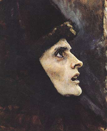 В. И. Суриков. Голова боярыни Морозовой. 1886 год. Этюд для картины «Боярыня Морозова». Третьяковская галерея.