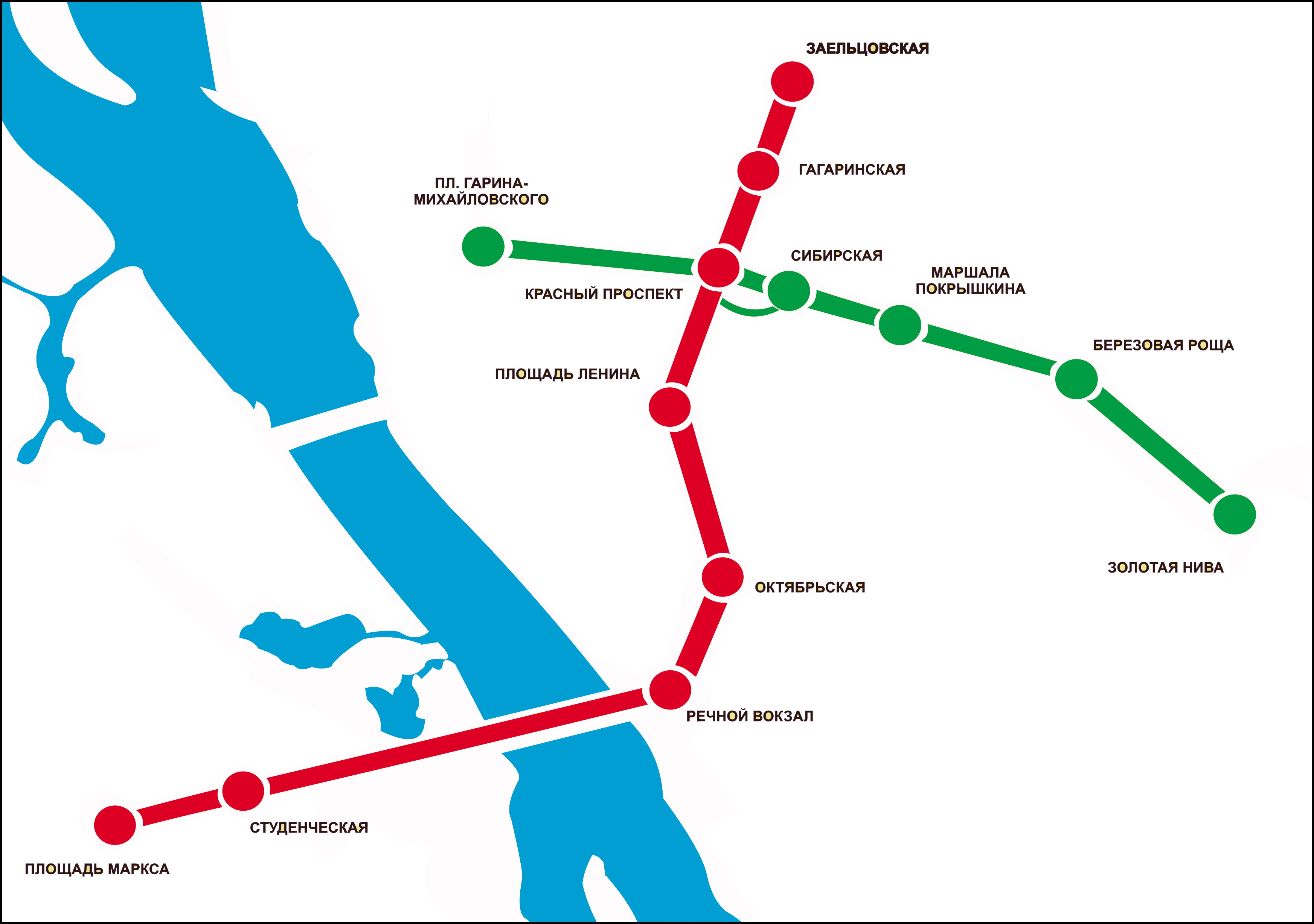 Схема линий Новосибирского метрополитена. Источник: официальный сайт Новосибирского метрополитена www.nsk-metro.ru
