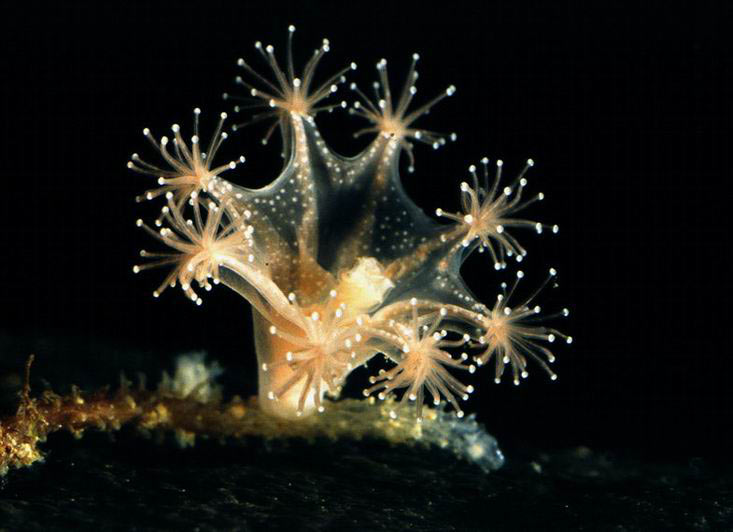 Сидячая медуза люцернария (Lucernaria quadricornis). По краям зонтика расположены шарообразные кончики шупалец.