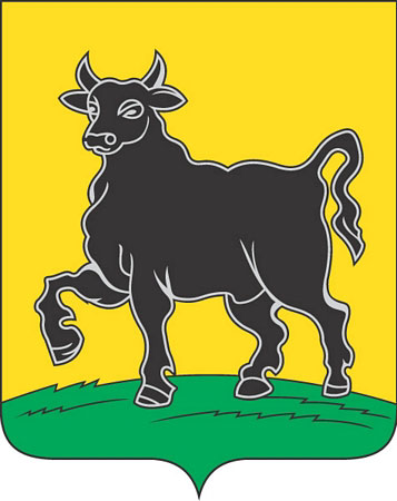 Герб Сызрани, принятый 19 марта 2002 года. В золотом поле на зеленой земле идущий черный бык появился на гербе Сызрани 22 декабря 1780 года. До революции ежегодно в конце лета из калмыцких степей на север двигались большие стада скота. Купленный сызранскими купцами-прасолами калмыцкий скот перепродавался в центральные губернии России.