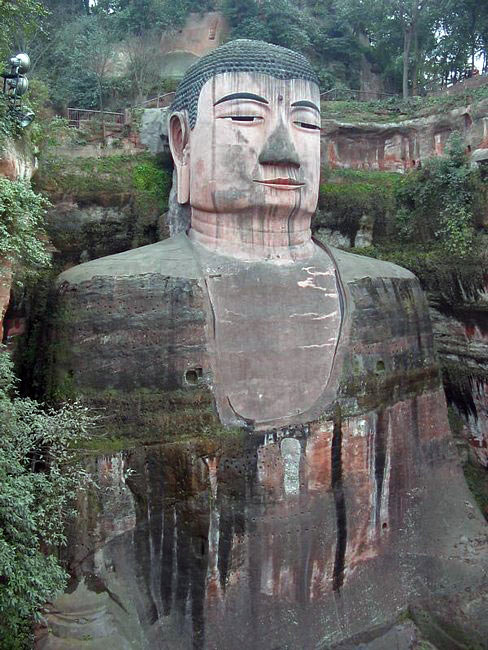 Сычуань. Каменная статуя Будды в горах Лэшань — самая высокая в мире.