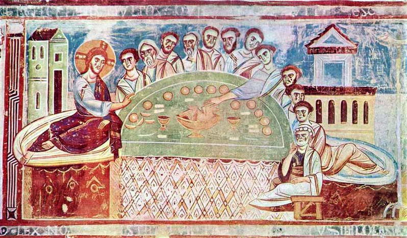 Тайная вечеря. Фреска 12 века. Церковь монастыря Сант-Анджело в Капуе.