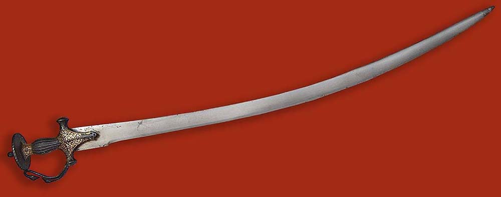 Талвар. Индия, 18 век. Булат, на рукояти насечка золотом.