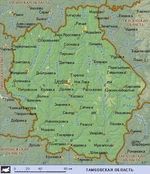 Тамбовская область (географическая карта)