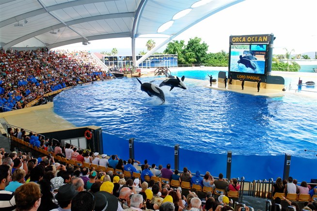 Шоу с косатками в дельфинарии «Лора-парка» в Пуэрто-де-ла-Крус. Фото: Виталий Нестеров