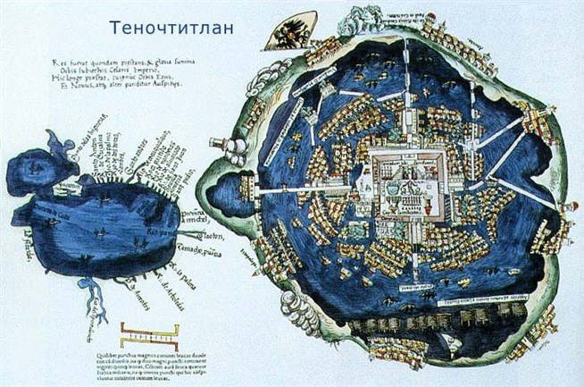 Теночтитлан. План города в книге колониального периода.