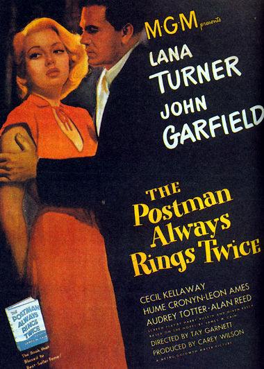Плакат к фильму «Почтальон всегда звонит дважды» с участием Ланы Тернер и Джона Гарфилда. 1946 год.