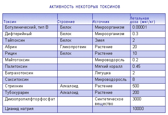 Активность некоторых токсинов.