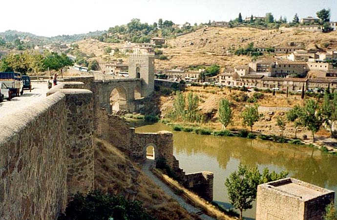 Толедо. Вид на город и старинный мост через реку Тахо.