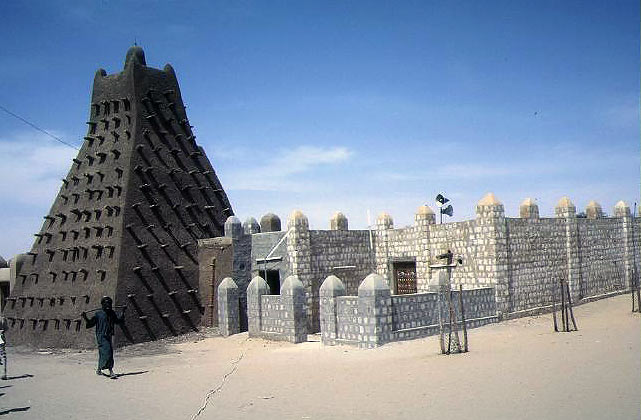 Мечеть Санкоре. Отличительная черта мечети — деревянные конструкции на стенах, служащие для ежегодных ремонтов мечети после сезона дождей.