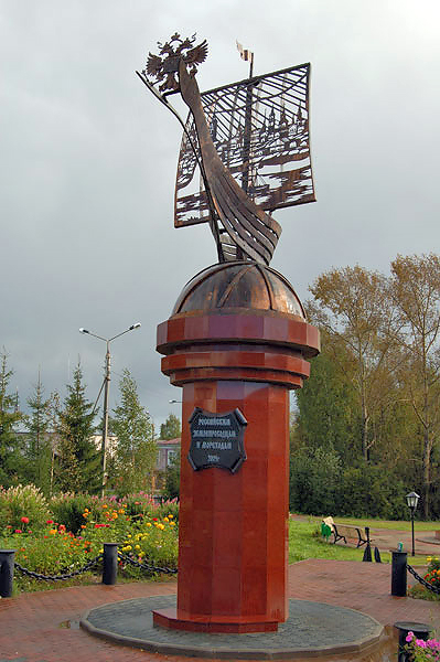 Тотьма. Памятник российским землепроходцам и мореходам.