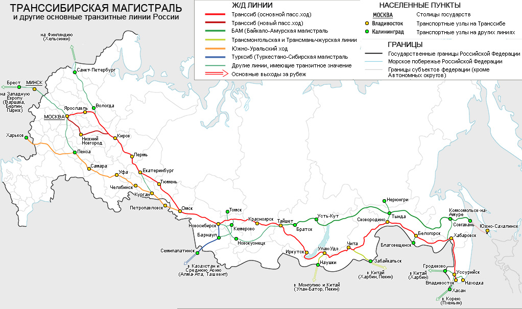Транссибирская магистраль связывает Европейскую часть России с Сибирью и Дальним Востоком.