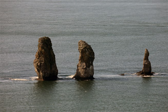 Три брата — группа из трех выступающих из воды столбообразных скал (кекуров), расположенных на входе в Авачинскую бухту на Камчатке. Являются официальным памятником природы и своеобразным символом Авачинской бухты и города Петропавловска-Камчатского. Фото: Сергей Покладов