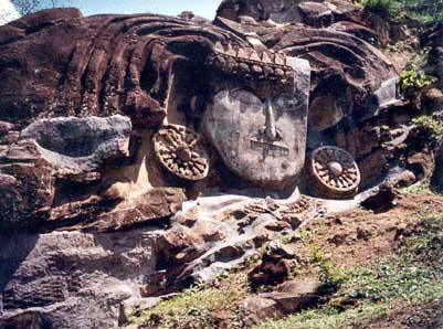 Трипура. Скульптура бога Шивы (7-9 вв.), вырезанная в скале в местечке Унакоти, в 178 км от столицы штата Трипура.