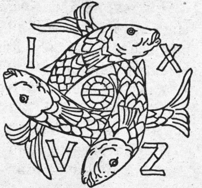Церковная эмблема Троицы: три рыбы со священным названием ІХѲѴZ