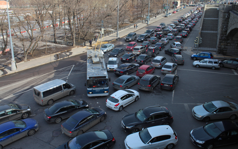 Троллейбус в московской пробке. 2013 год. Фото: KM.ru