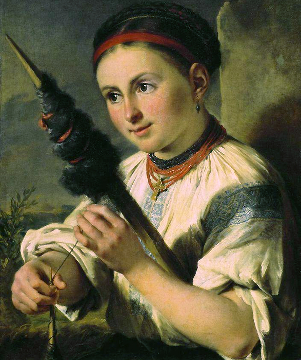 В.А. Тропинин. Пряха. 1820-е годы. Холст, масло. Третьяковская галерея.