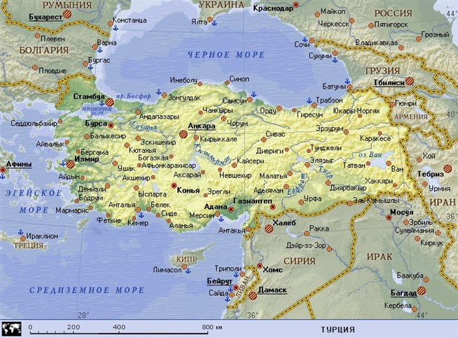 Турция (географическая карта).