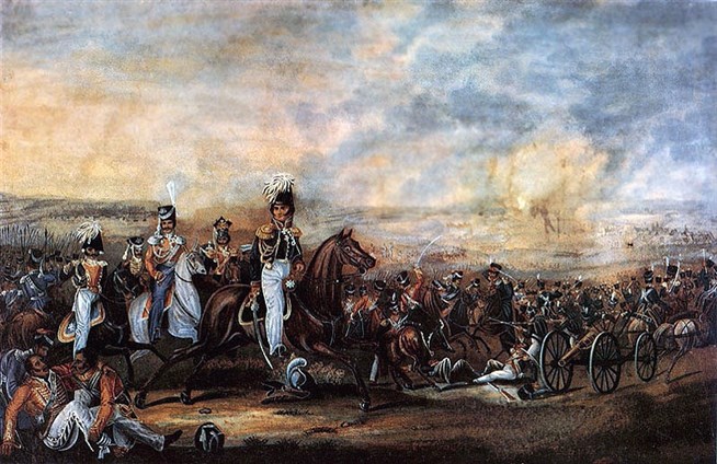 Кавалерийская атака генерала Ф. П. Уварова. Раскрашенная литография С. Васильева по оригиналу А. Дезарно.1-я четверть 19 в.
