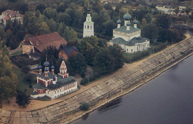 Золотое кольцо России. Углич. Ансамбль кремля. Церковь Св. Димитрия «на крови» (1683-92, на переднем плане) и Спасо-Преображенский собор (1485, перестроен в 1713) с колокольней.
