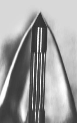 Фотография ударной волны перед движущимся снарядом.