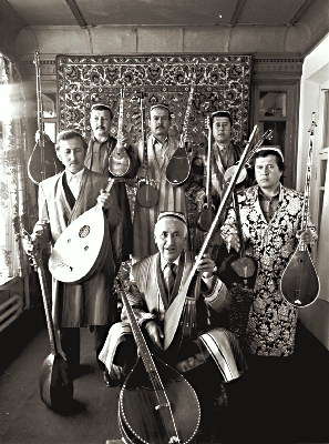 Узбекские мастера-реставраторы с народными музыкальными инструментами.