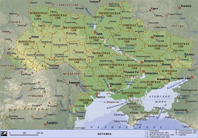 Украина (географическая карта).
