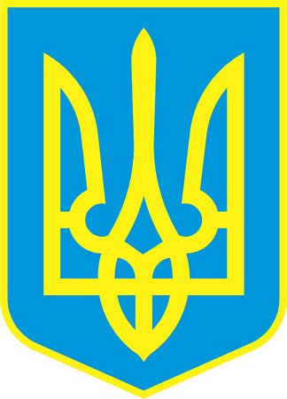 Малый герб Украины представляет собой синий щит с золотым трезубцем.
