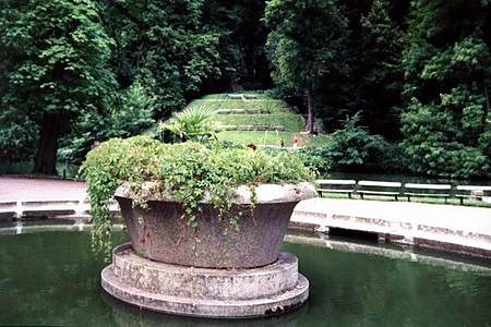 Умань. Парк «Софиевка». Декоративная каменная ваза посреди небольшого пруда.