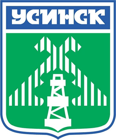 Герб Усинска был принят 26 ноября 1992 года. Зеленый фон щита символизирует лесные богатства территории. В центре герба изображен чум оленевода в сполохах северного сияния. Внизу щита — нефтяная вышка, которая как бы находится внутри чума.