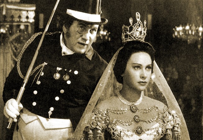 Питер Устинов и Мартин Керол в фильме режиссера Макса Офюльса «Лола Монтес». 1955 год.