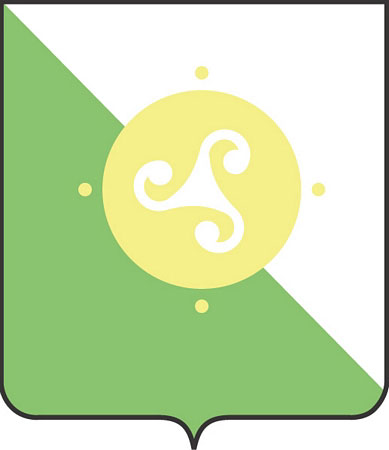 Герб Усть-Ордынского Бурятского автономного округа. На бело-зеленом щите изображен золотой круг — солярный знак. В нем — триада белого цвета — наиболее яркий и характерный элемент орнамента предбайкальских бурят. По четырем сторонам круга располагаются золотые безанты — символы четырех сторон света.