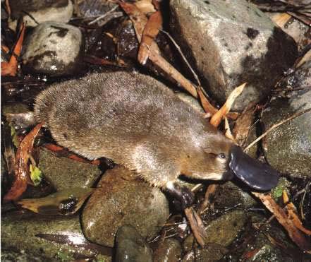 Утконос. Его морда имеет форму «утинного клюва», являющегося органом осязания и служащего для добывания пищи.
