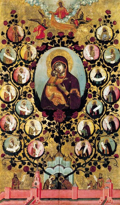 С.Ф. Ушаков. Богоматерь Владимирская — древо государства Российского. Икона из Троицкой церкви в Никитниках в Москве. 1668 год. Третьяковская галерея.