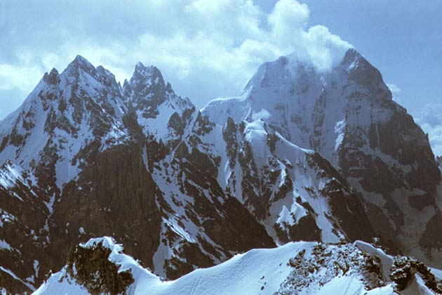 Вершина Ушба. Горный массив Шхельда. Кавказ.