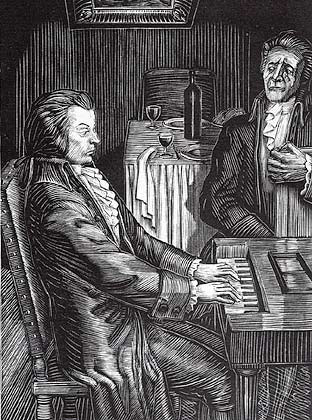 В. А. Фаворский. «Моцарт и Сальери». Иллюстрация к «Маленьким трагедиям» А. С. Пушкина. 1959-1961 годы. Третьяковская галерея.