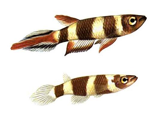 Факельный эпиплятис. Вверху самец, внизу самка.