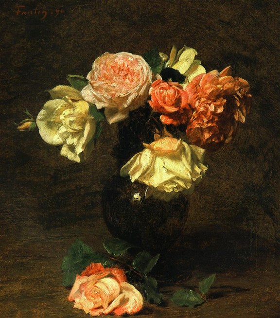 А. Фантен-Латур. Розовые и белые розы. 1890 год. Холст, масло. Частная коллекция.