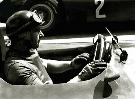 Аргентинский автогонщик Хуан Мануэль Фанхио на старте.
