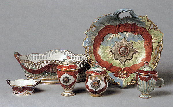 Предметы сервиза ордена Александра Невского. Завод Ф. Гарднера. 1778-1780-е годы. Фарфор. Надглазурная роспись.