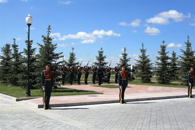 Торжественный салют на Федеральном военном мемориальном кладбище в день первого захоронения останков безымянного воина, погибшего в 1941 году. Фото Сергея Покладова.