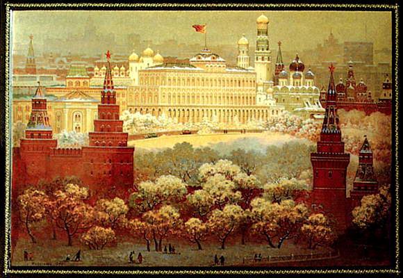 Федоскинская миниатюра. Шкатулка «Кремль зимой». Мастер Н. Пучков.