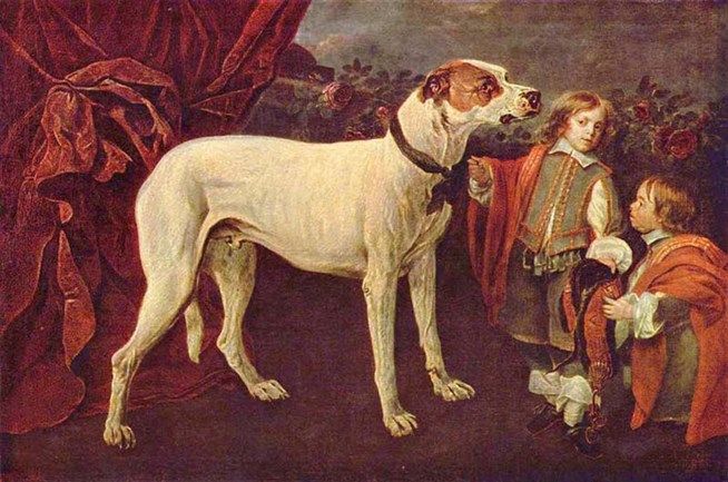 Ян Фейт. Большая собака, мальчик и карлик. 1652 год. Холст. Дрезденская галерея.